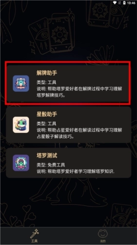 2、‘工具’中选择解牌助手