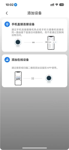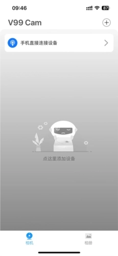 1、在相机页面,既可以选择让手机直接连接设备,也能点击下方的添加设备按钮来操作。