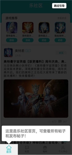 1、首先打开软件,进入首页,这里是乐社区,你可以查看帖子,也能发布帖子。