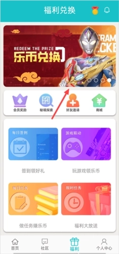 1、在福利界面点击上方的“乐比兑换”轮播图。