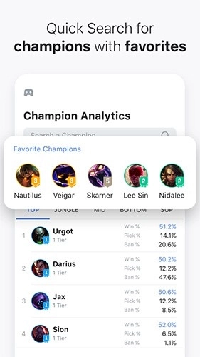 1、知晓每个英雄最近赛季的出场次数与胜率,掌握当前的KDA数据,甚至场均金币数量都清晰呈现,方便各位玩家更高效地进行统计。