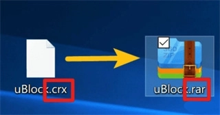 电脑版插件无法直接安装到Yandex浏览器,需要先进行一点小修改,这里以广告拦截插件uBlock.crx为例说明操作步骤:先把插件文件的后缀名.crx改成.zip或者.rar,接着解压文件(我一般习惯改成.zip,但这个插件改.zip解压时会报错,换成.rar就没出现问题)。