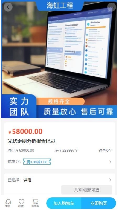 海虹工程主要为用户提供光伏运维记录管理服务,还能让用户便捷采购所需商品。平台涵盖多种商品类型,支持选购下单,通过详细的商品分类可快速查找,提供规格齐全的选择,助力系统维护与调试,从而实现高效的光伏运维管理。
