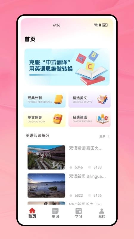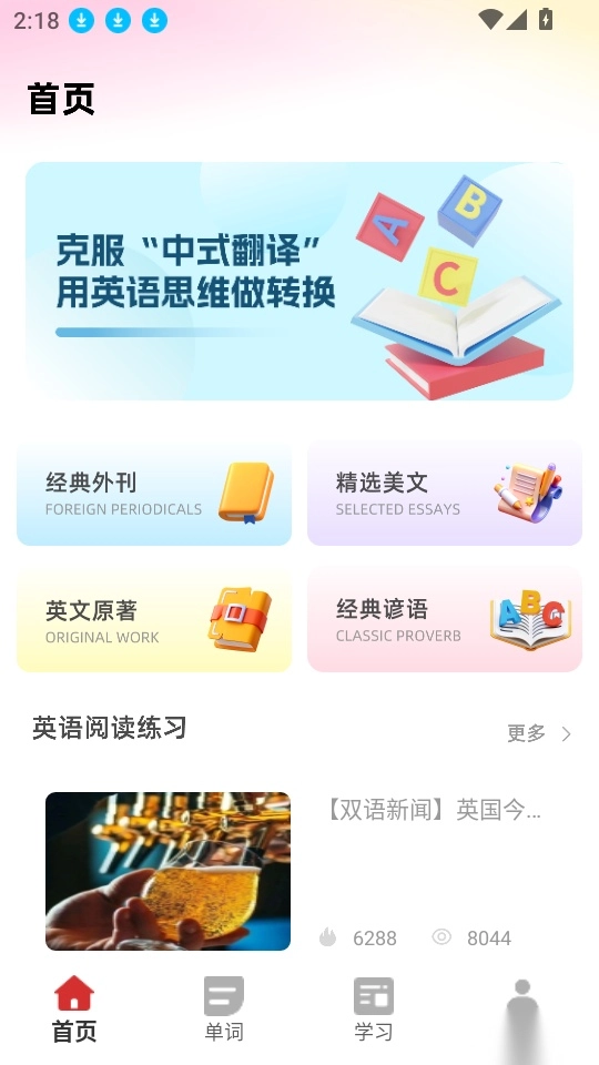 支持用户借助英语外刊与经典谚语资源开展阅读练习,能够随心畅读英文原著,还能实时阅读外刊。