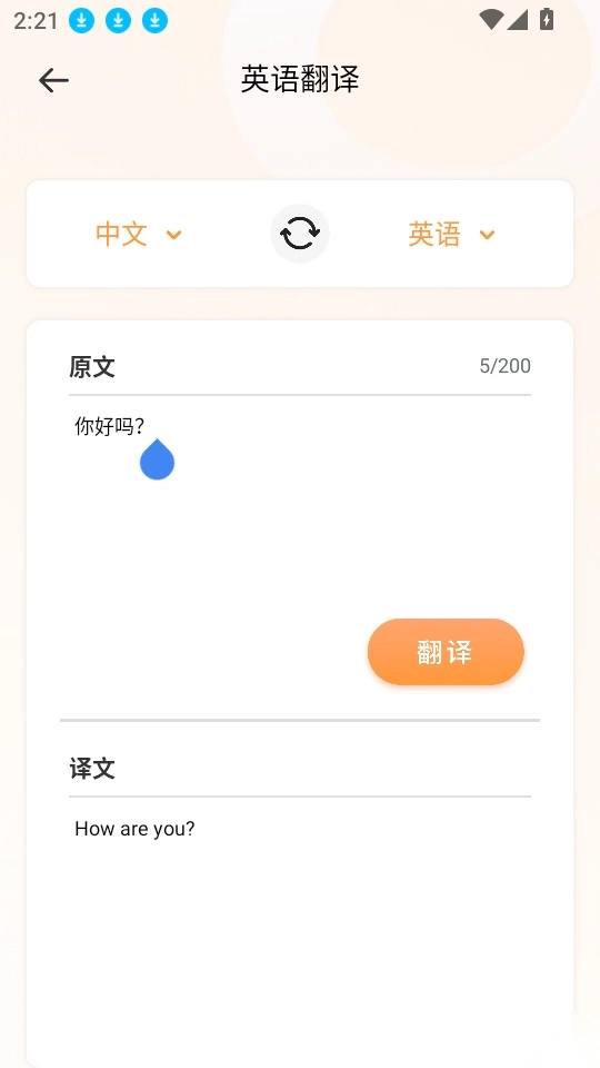 3、接下来在功能模块里点击“英语翻译”按钮,继续下一步操作。
