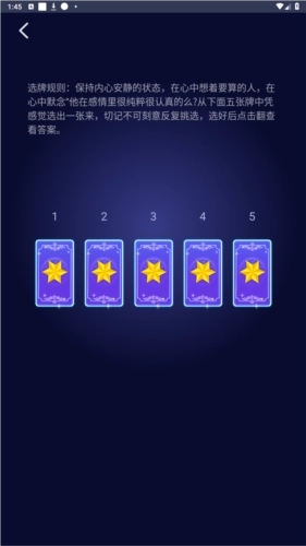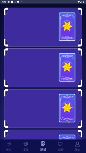 3、【测试】页面:这里有不少卡牌可供抽取,抽取后就能查看运势啦;