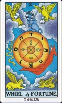 天上的轮子不停转动,意味着命运也像轮子一样不断转变,正如“十年河东,十年河西”“风水轮流转”所说,转机仿佛就在眼前。