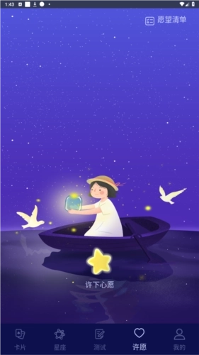 4、【许愿】页面:你可以在此许下心愿,随后点击右上角的愿望清单,即可查看自己的愿望实现情况;