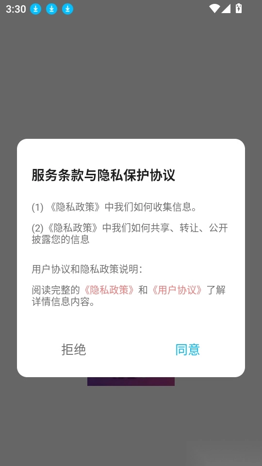 1、首先打开应用点击“同意”按钮进入中。