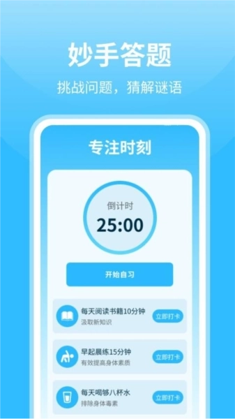 3、专注提升:通过营造专注时刻,助力你全身心投入学习,有效增强注意力,逐步养成良好的学习习惯。