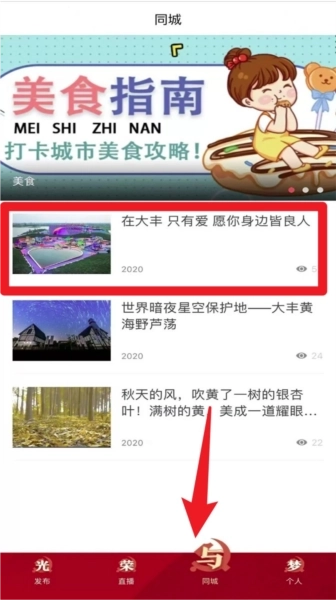 3.进入“同城”页面,能够浏览本地美食攻略、城市活动以及图文资讯,内容涵盖吃喝玩乐等各类生活方面。