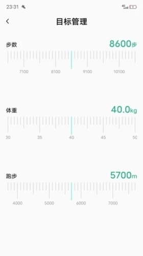 4、用户也能够管理自身的运动目标,依据个人需求灵活设置步数、体重、跑步等相关信息。