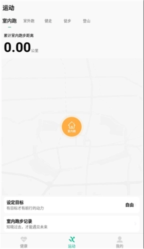 2、点击“运动”选项,能够协助用户记录室内跑、室外跑、健走、登山等各类运动的数据信息。