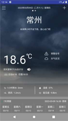 安装常州气象免费版,让天气预报触手可及。无论是出行、工作还是休闲,这款应用都将成为您的贴心伙伴,提供全天候的气象服务。实时监测天气动态,精准预报气象变化,助您随时随地掌握常州天气,从容安排每一天。现在就下载使用,体验科技带来的便捷,让天气预报为您的出行保驾护航!