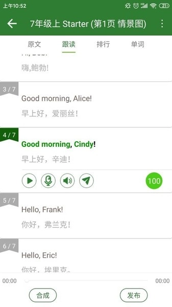 3.口语练习:配备专业语音评测系统,支持逐句跟读并即时评分,助力用户轻松习得地道口语表达。
