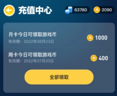 1、充值金币时,若金币数量不足,可直接通过软件进行充值操作,充值完成后就能领取对应的金币奖励了。