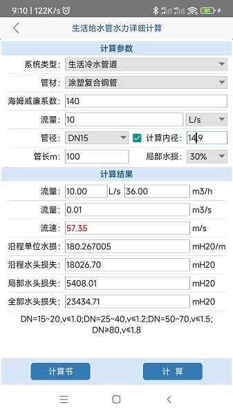 给排水计算器手机版依托多样的计算功能、便捷智能的操作感受,加上对行业前沿趋势的密切关注,已然成为众多工程师与设计师的优先选择工具。它不但能有效提升工作效率,还借助自身强劲的数据处理水平和准确的计算成果,推动项目稳步开展。