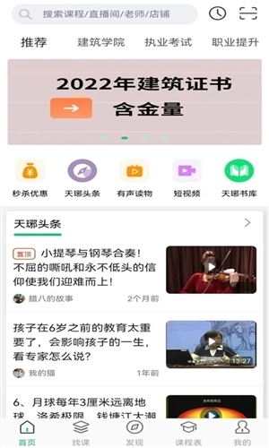 3、用户也能收藏、分享转发自己喜爱的课程;天琊头条可帮助用户在学习间隙知晓行业资讯;