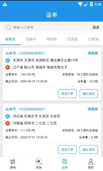 进入货源界面寻找各种各样的货源信息在线接单