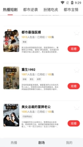4、在热门选项板块,你可以观看各类最完整的短剧,以及正在热门更新的短剧,同时还能了解到其他正在观看这部短剧的用户的感受。