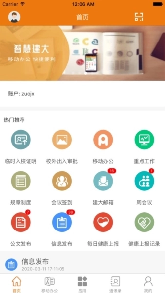 3、进入首页后,办公服务、校园生活等各类信息便清晰可见。