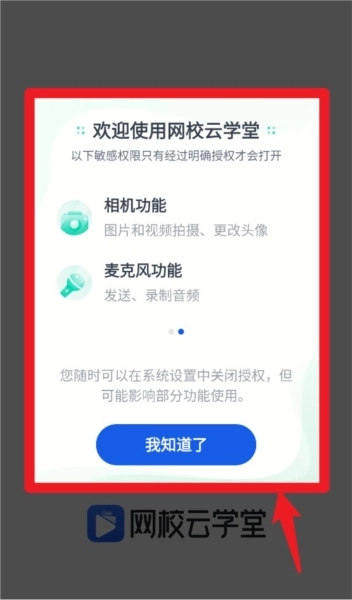 2、继续滑动查看可以发现,应用还会申请相机和麦克风权限,这些权限分别用于头像拍摄以及语音功能的使用,以此保障教学互动能够全面开展。