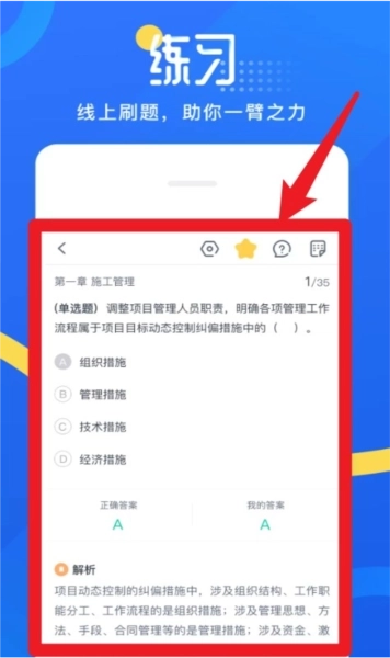 5、练习功能设有章节试题在线刷题模式,题目配备正确答案与答案说明,助力用户系统把握考试重点。