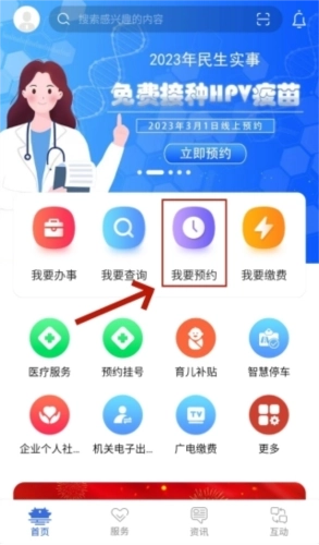 1、先在本站把高效办App安装好,之后在首页找到并点击“我要预约”选项。