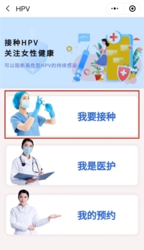 2、在【我要预约】界面点击“HPV预约”,系统会自动跳转至高效办微信小程序,此时需重复相关操作并完成手机号登录授权。