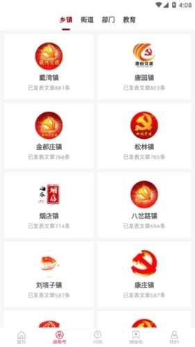 2、问政板块:包含我要问政、部门列表、满意度排行、回复率排行、最新问政等功能