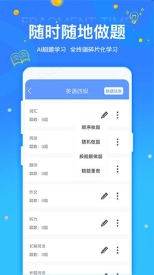 3、AI刷题功能:用户可将搜索到的题目添加至个人创建的专属题库,该题库支持顺序刷题、随机刷题以及按提醒刷题等多种模式。通过灵活的刷题方式,能够帮助用户更牢固地掌握知识点,充分满足不同的学习需求。