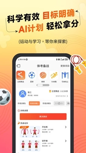 (达运动)数千万线下中考用户力荐的AI体育中考专业训练;依据你的体育成绩,量身定制专属训练方案,提供多元锻炼新方式,AI实时精准捕捉关节动作,在保障运动安全的同时,避免“无效”练习。