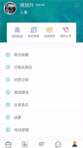 5、进入“我的”界面后,就可以选择职位管理、我的公司、浏览记录、设置等功能来使用了。