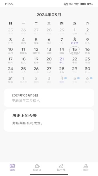 提供公历与农历双模式显示,支持日期快速跳转和历史事件回溯功能。用户能够查看未来五年内的节假日安排、节气信息以及黄历宜忌,充分满足传统文化方面的需求。