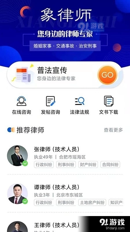 象律师软件能为大家提供全方位的法律帮助服务,平台上的律师都具备丰富的执业经验,大家可以在这里享受免费的法律咨询服务,有需求的朋友们快来使用象律师吧。