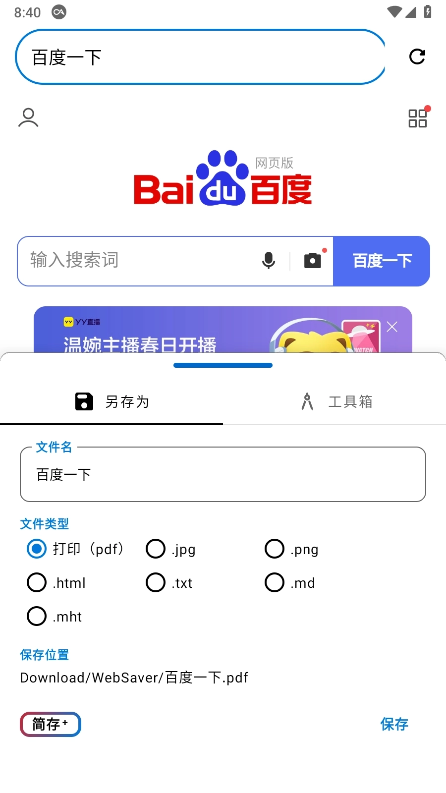 建议尝试通过浏览器打开网页后再进行保存操作,而不是直接在应用程序内部完成这一操作。