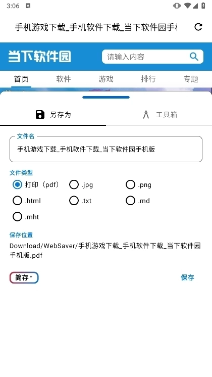 步骤3:在简存+界面挑选保存格式(例如PDF),然后点击“保存”按钮,将文件存储到本地设备。