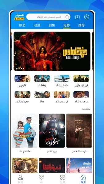 BaxlanKino电视版是一款面向新疆维吾尔族用户的双语视频应用,每日推送当下最热门、最受大众喜爱的各类视频内容,让您随时沉浸在精彩的视觉享受中。在这里,您可以在线观看全网热门视频、幽默搞笑视频、最新综艺及MV等,播放速度流畅快捷。平台汇聚了众多少数民族用户感兴趣的地方特色影视资源,同时提供大量优质影视作品的双语播放服务;趣味短视频可随时刷看,热门电影与电视剧也会每日更新,充分满足您的观影需求。如果您有追剧的喜好,不妨体验一下这款应用,畅享海量高清大片带来的乐趣。