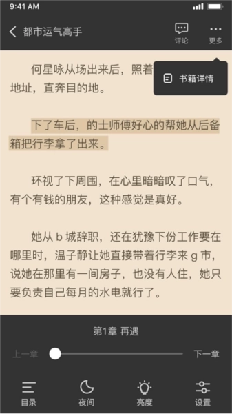 -贴心地具备护眼模式,即便在晚上阅读也无需担心伤害眼睛,还可选择夜晚模式。