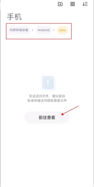 4、回到文件管理界面,找到android-data文件夹,点击进入查看。