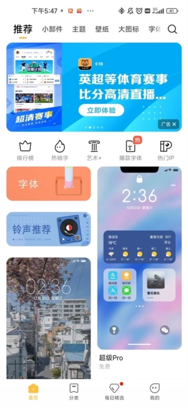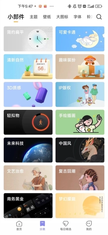 主题商店里有主题、壁纸、字体、锁屏、铃声等海量资源,并且每天都在不间断地更新。