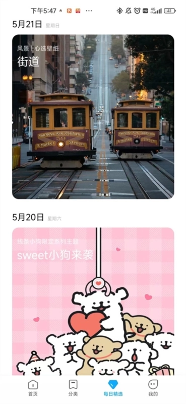 小米主题商店是小米专门为MIUI系统打造的优质手机主题美化应用,能为用户提供壁纸、字体、锁屏、图标、状态栏样式等丰富美化功能,涵盖动漫卡通、简约精品、文艺清新、唯美古典等多元主题风格。这款软件界面清爽简洁,功能直观易懂,当前主界面划分为首页、分类、每日精选和我的四大板块,各板块功能明确,操作便捷。用户在此不仅能快速找到心仪的主题壁纸,还可挑选适配的手机铃声、字体或锁屏界面,一键即可切换超简约、轻奢商务、小清新、萌萌哒、个性潮流、唯美文艺等各类风格主题,总有一款能满足你的喜好。