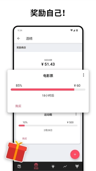 应用会给出奖励方面的建议,用户能够依据自己节省下来的时间和金钱来设置奖励,比如购买自己喜欢的物品。