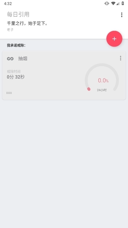 打开应用后,点击右上角的“+”按钮,就可以自定义添加自己想要戒除的习惯,比如戒烟、戒酒、减少屏幕使用时间等。