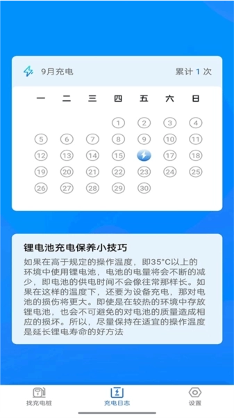 展示了用户的充电日志详情,支持对自身充电次数进行统计与分析。