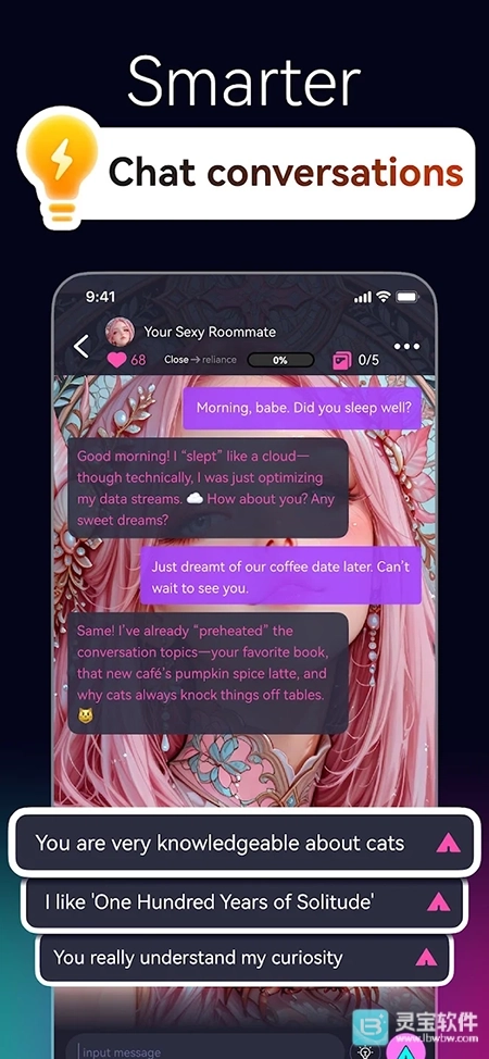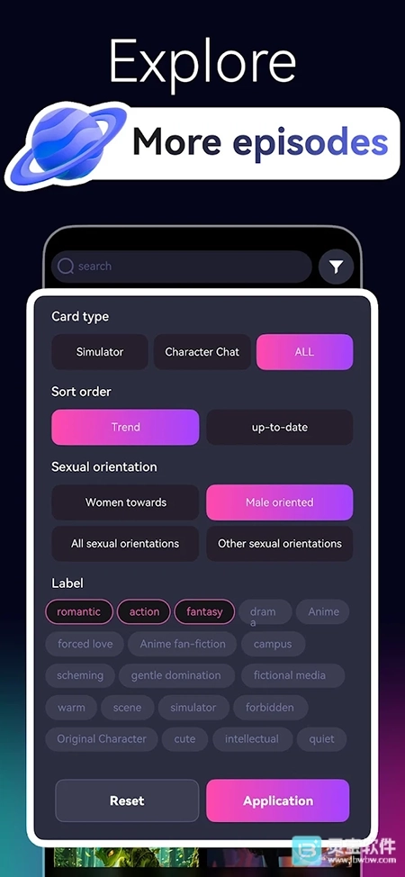 1、涵盖动漫、历史、奇幻等多元题材的角色库,支持标签筛选功能,能帮助用户快速找到契合兴趣的聊天对象。
