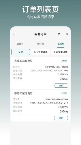 5、个人的充电订单管理,手机一键查询充电金额。