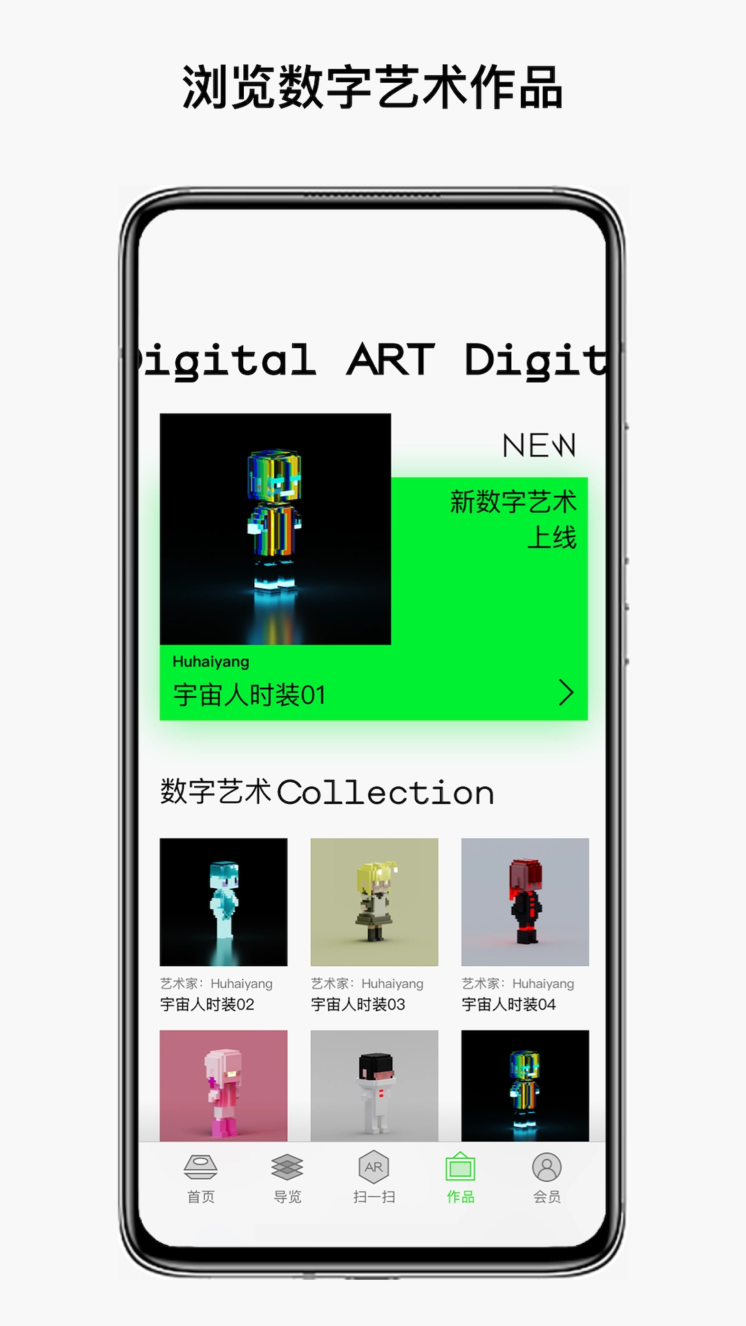 在作品展示页面,您可以浏览馆内所有的虚拟数字艺术藏品。只需点击任意作品的缩略图,就能查看该作品的高清大图,以及艺术家的相关信息和作品介绍。