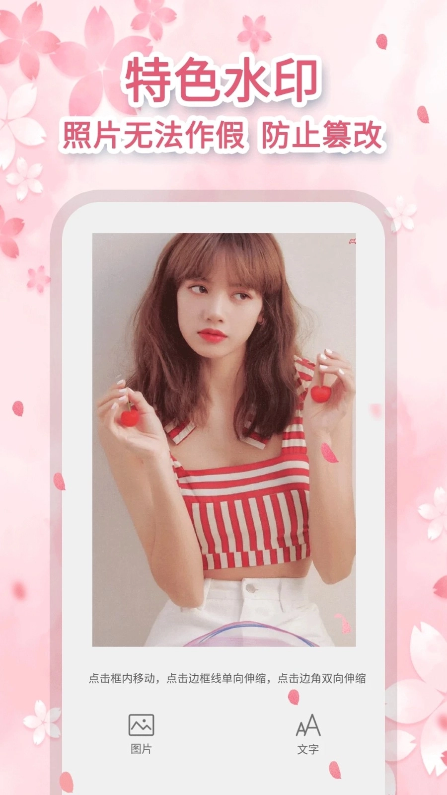【图片水印功能】:支持导入自定义相册图片作为水印,还能添加自定义文字、进行自由涂鸦创作,多图层设计让你随心发挥创意