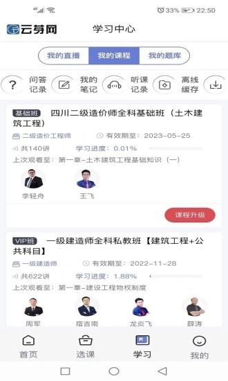 1、云芽教育会实时保存用户的个人课程,用户可以随时查看所有课程内容,并且支持按顺序逐个进行学习。